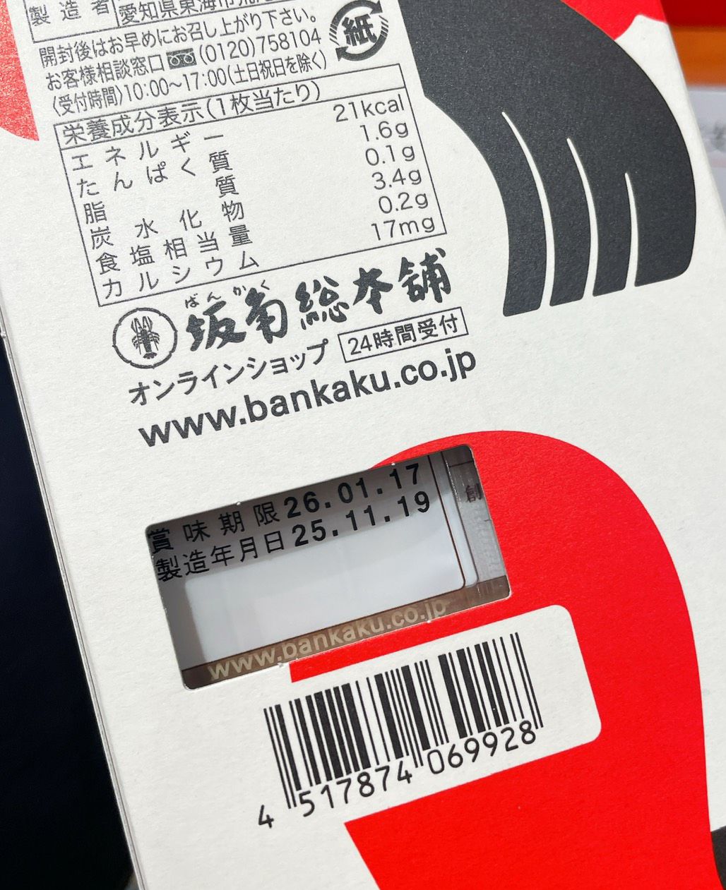 坂角總本舖 ゆかり干支ノ箱 16枚入 江戸時代に由来する伝統と技で、 新鮮な海老の身を丹念に焼き上げた深く香ばしい味わい。 海老の濃厚な旨みとコク、香ばしさを引き出しながら、 高タンパクで低脂肪、さらにカルシウムが豊富。 鉄板の一度焼きで海老の濃厚な旨みを封じ込めた後、 炭火に近い遠赤外線網焼き器でていねいに二度焼き仕上げ、 豊かな風味と香ばしさを引き立たせています。 内容量 : ゆかり8枚入×2袋 賞味期限 : 製造日より60日間 💰價錢: 💲125 供應商隨時會更改價錢 下單前請先向我們查詢最新價錢 一切以下單時價格作準 ⏰截單日: 可長訂直到停產或者缺貨 🔜預計約4星期到貨 https://wewevavashop.boutir.com/ Signal GP: https://signal.group/#CjQKIIF0P55YCI4Kef_pVtjNtvtF3Gq4oWfho-rHH_I3XXbJEhADb-ff7TRQQicPixYt-Y1w Whatsapp GP: https://chat.whatsapp.com/Kk0DaE1nYKcGSP2SaNhO2h MEWE page: http://mewe.com/i/wewevavashop Facebook page: https://www.facebook.com/Wewe-Vava-Shop-102426269175059 HKBidding: https://www.hkbidding.com/store/wewe-vava-shop/