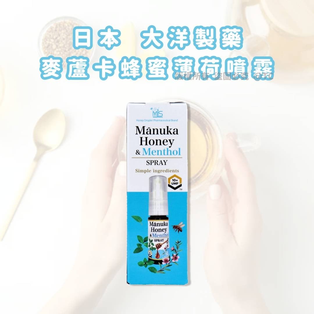 【日本直送 大洋製藥 UMF 10+ 麥蘆卡蜂蜜薄荷噴霧 20g】 結合來自新西蘭的純淨蜂蜜、甘油與清涼薄荷,配方簡單純淨且無酒精,攜帶方便,隨時為您帶來滋潤感與清新舒爽。🍯❄️天然蜂蜜滋養喉嚨,薄荷帶來舒緩涼感,幫助提升使用體驗,溫和無色素無防腐劑,安全可靠。 ✅添加甘油保濕和薄荷舒緩涼感❄️ ✅無色素、防腐劑及抗氧化劑,無酒精🥂 ✅輕巧噴霧設計,方便隨身攜帶🚶 ✅天然成分安全溫和,適合日常使用🌟 規格:20g 💰價錢: 💲160 供應商隨時會更改價錢 下單前請先向我們查詢最新價錢 一切以下單時價格作準 ⏰截單日: 2025/12/22 🔜預計約1月中到貨 https://wewevavashop.boutir.com/ Signal GP: https://signal.group/#CjQKIIF0P55YCI4Kef_pVtjNtvtF3Gq4oWfho-rHH_I3XXbJEhADb-ff7TRQQicPixYt-Y1w Whatsapp GP: https://chat.whatsapp.com/Kk0DaE1nYKcGSP2SaNhO2h MEWE page: http://mewe.com/i/wewevavashop Facebook page: https://www.facebook.com/Wewe-Vava-Shop-102426269175059 HKBidding: https://www.hkbidding.com/store/wewe-vava-shop/