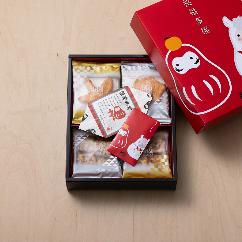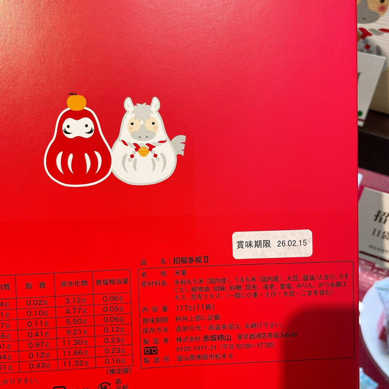 赤坂柿山 招福多福II 11袋 販売期間:2025.12.1~2026.1.15 ・ぽちおかき 慶長[醤油 1枚] ・鶴煎餅[醤油 1枚] ・亀煎餅[醤油 1枚] ・古乃端[昆布 10粒] ・ひとくち豆柿[醤油 10枚] ・小角かきもち[胡麻 10枚] ・サラダ棒[海老 26g] 賞味期限[発送日時点で45日以上] サイズ[縦270mm・横209mm・高53mm] 特定原材料[小麦・海老・大豆・ごま] 原材料[水稲もち米(国内産)、うるち米(国内産)、大豆、醤油(たまり、うすくち)、植物油、胡麻、砂糖、昆布、海老、食塩、みりん、かつお節エキス、昆布エキス、(一部に小麦・えび・大豆・ごまを含む)] 毎年変わる干支ダルマのデザインが愛らしい箱は、おめでたい鶴亀せんべいやぽち袋に入った「ぽちおかき」など、お年賀にぴったりの縁起づくし。一緒に入っている紙風船は富山の薬売りが子供たちに配っていた四角いサイコロ型。四角い形は富山だけの特徴です。 💰價錢: 💲150 供應商隨時會更改價錢 下單前請先向我們查詢最新價錢 一切以下單時價格作準 ⏰截單日: 可長訂直到停產或者缺貨 🔜預計約4星期到貨 https://wewevavashop.boutir.com/ Signal GP: https://signal.group/#CjQKIIF0P55YCI4Kef_pVtjNtvtF3Gq4oWfho-rHH_I3XXbJEhADb-ff7TRQQicPixYt-Y1w Whatsapp GP: https://chat.whatsapp.com/Kk0DaE1nYKcGSP2SaNhO2h MEWE page: http://mewe.com/i/wewevavashop Facebook page: https://www.facebook.com/Wewe-Vava-Shop-102426269175059 HKBidding: https://www.hkbidding.com/store/wewe-vava-shop/