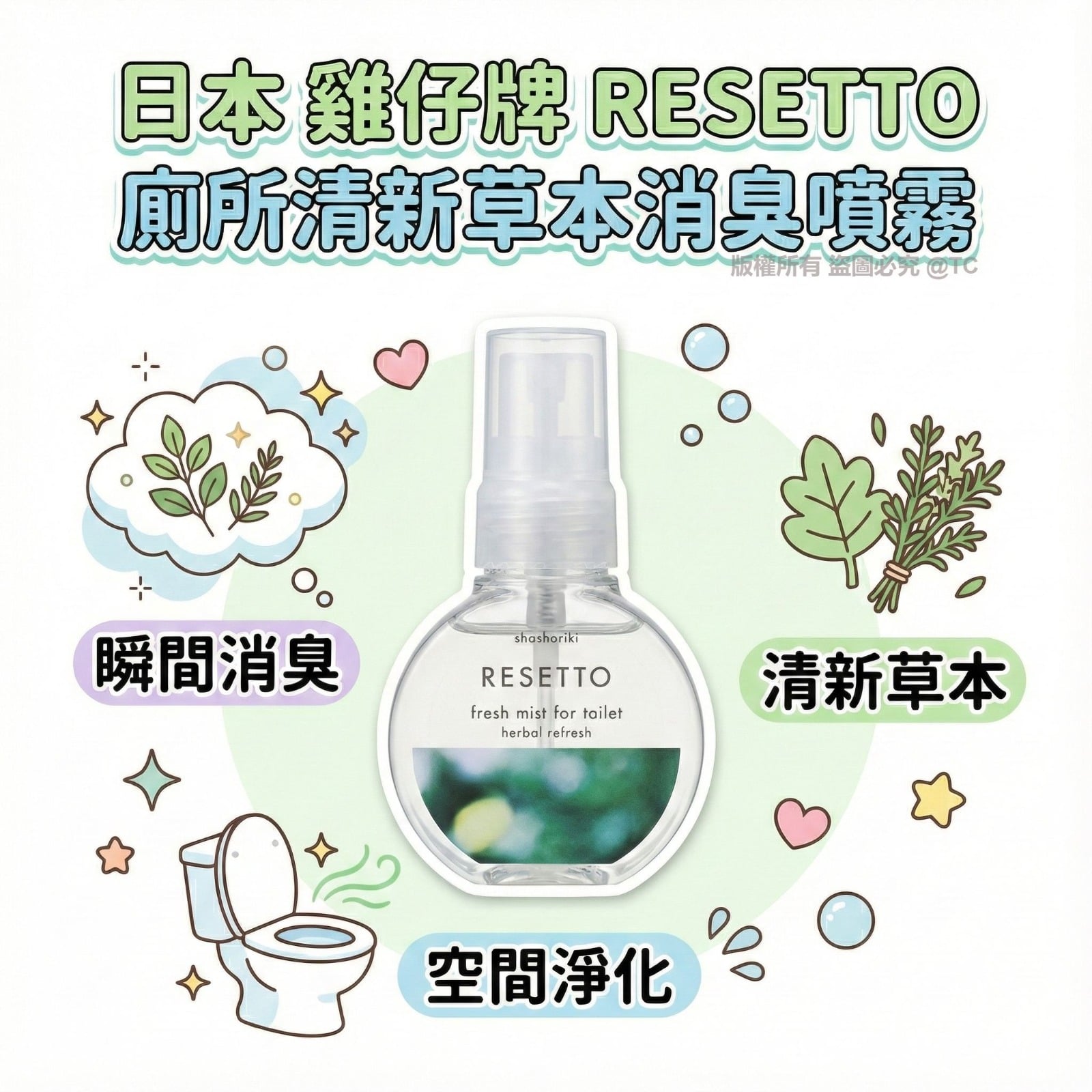 【日本製造 雞仔牌 RESETTO 廁所清新草本消臭噴霧 60ml】