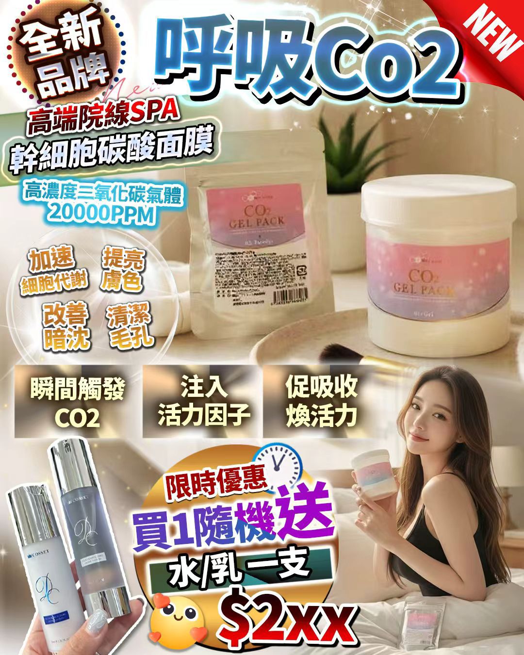 BeBecel CO2 Gel Pack 呼吸CO2 送水乳 一支 高端院線SPA,首創新版銀座乾細胞碳酸面膜高濃度二氧化碳氣體20000PPM 加速細胞代謝,提亮膚色,改善暗沈,清潔毛孔 在家享受美容院級“注氧”護理,毛孔喝飽水,臉蛋嘭彈亮 泡泡滲透術!會“呼吸”的泡泡SPA:*一塗上臉,立刻“滋滋滋”冒出超多綿密泡泡! 深層注氧,打開吸收通道:碳酸泡泡產生微壓,打開毛孔和角質間隙,把水分和營養“壓”進皮膚深層!後續護膚品吸收翻幾倍 ✨強效保溫 透明質酸、神經酰胺、膠原蛋白、角鯊烷。 ✨抗老緊致 視黃醇、多肽、輔酶Q10、蘋果乾細胞提取物。 ✨美白亮膚 維生素C衍生物、熊果苷、煙酰胺。 ✨舒緩修護 積雪草提取物 💖促吸收• 煥活力 CO2的微壓作用,撐開毛孔與角質層間隙 “營養通道”局限 💖促循環 •煥氣色 碳酸接觸皮膚產生溫熱感與輕微刺激 擴張毛細血管,加速血液循環,讓肌膚告別暗沈,即刻煥亮。 💖清潔海綿 吸附污垢與角質, 淨化毛孔,讓肌膚自由呼吸 使用方法 : 混合粉末:: 取一勺注氧面膜粉(約28-30克)與滿滿一勺碳酸(約1.5克),放入工具中進行混合。 攪拌:: 快速攪拌約5秒,直到面膜開始產生氣泡即可。 塗抹:: 將混合好的面膜均勻塗抹在臉上。 靜待:: 讓面膜在臉上停留約20分鐘。 刮除與清洗:: 使用攪拌棒輕輕刮掉面膜,然後用清水將臉部徹底清洗乾淨。 日本製500g 💰價錢: 💲270 供應商隨時會更改價錢 下單前請先向我們查詢最新價錢 一切以下單時價格作準 ⏰截單日: 可長訂直到停產或者缺貨 🔜預計約4星期到貨 https://wewevavashop.boutir.com/ Signal GP: https://signal.group/#CjQKIIF0P55YCI4Kef_pVtjNtvtF3Gq4oWfho-rHH_I3XXbJEhADb-ff7TRQQicPixYt-Y1w Whatsapp GP: https://chat.whatsapp.com/Kk0DaE1nYKcGSP2SaNhO2h MEWE page: http://mewe.com/i/wewevavashop Facebook page: https://www.facebook.com/Wewe-Vava-Shop-102426269175059 HKBidding: https://www.hkbidding.com/store/wewe-vava-shop/