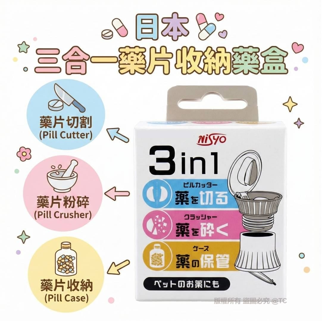多功能設計💊集切藥、碎藥、儲藥於一身✨無論是每日服藥或幫毛孩分藥都方便,可把錠劑切半或研磨成粉末🌟透明下層方便確認藥品狀況🔍小巧輕便,外出旅行都能隨身攜帶👜體積小但功能齊全🌈讓服藥過程更簡單更安全