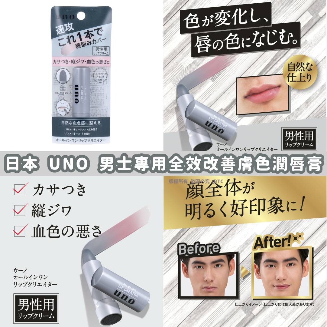 【日本製造 Shiseido UNO 男士專用全效潤唇膏 2.2g】 多效合一潤唇膏,可快速遮蓋嘴唇乾燥💋、垂直細紋和膚色不佳,打造自然好氣色 ✅含有改善膚色的成分,當塗在嘴唇上時,顏色會從灰色變為淡淡的粉紅色💄 ✅清新、不粘膩,不含薄荷醇,無味🚫 ✅溫和滋養及修護乾燥雙唇🍂,保護唇部幼嫩肌膚 產地:日本 規格:2.2g 💰價錢: 💲75 供應商隨時會更改價錢 下單前請先向我們查詢最新價錢 一切以下單時價格作準 ⏰截單日: 2025/10/28 🔜預計約11月中到貨 https://wewevavashop.boutir.com/ Signal GP: https://signal.group/#CjQKIIF0P55YCI4Kef_pVtjNtvtF3Gq4oWfho-rHH_I3XXbJEhADb-ff7TRQQicPixYt-Y1w Whatsapp GP: https://chat.whatsapp.com/Kk0DaE1nYKcGSP2SaNhO2h MEWE page: http://mewe.com/i/wewevavashop Facebook page: https://www.facebook.com/Wewe-Vava-Shop-102426269175059 HKBidding: https://www.hkbidding.com/store/wewe-vava-shop/