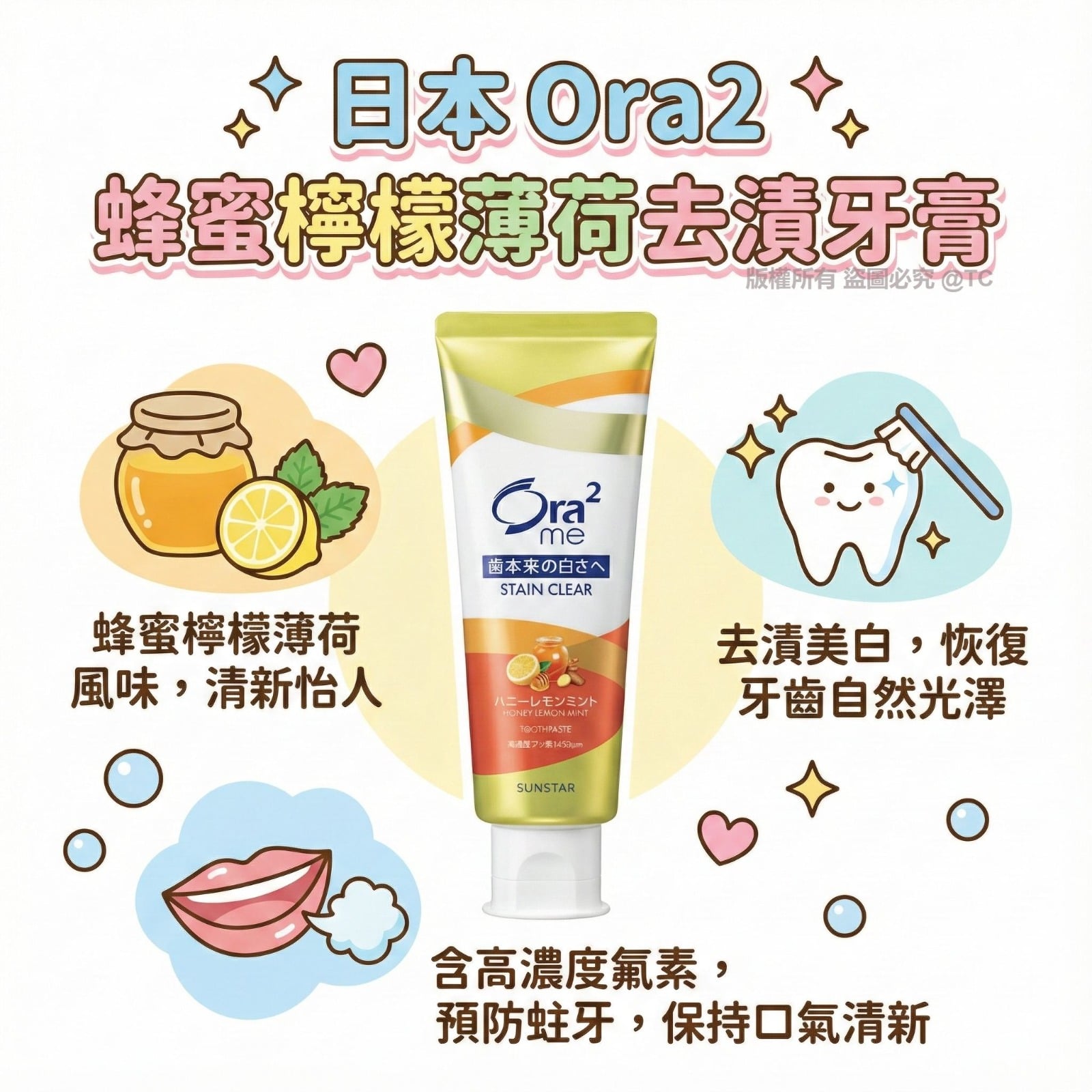 【日本製造 Sunstar Ora2 蜂蜜檸檬薄荷去漬牙膏 130g】
