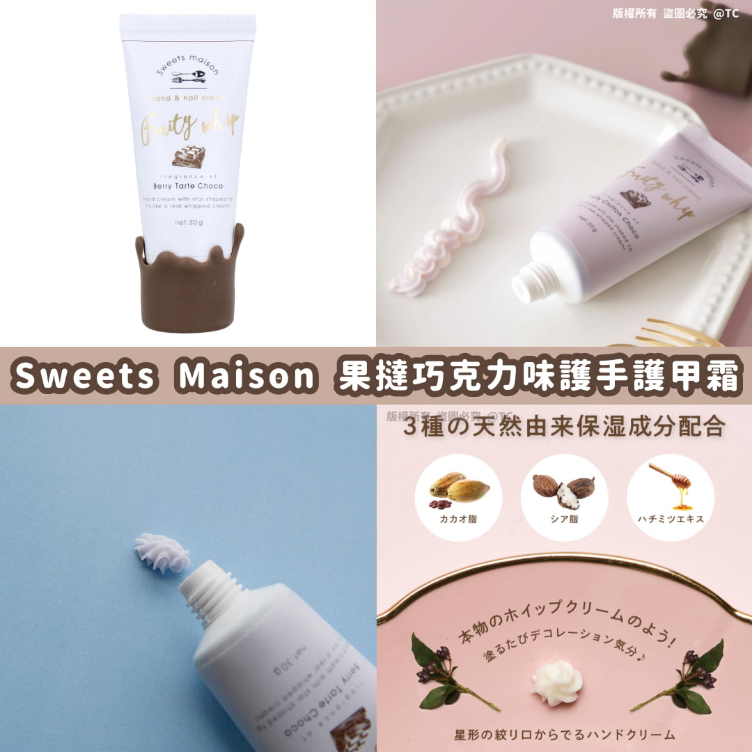 【日本直送 Sweets Maison 果撻巧克力味護手護甲霜 30g】 ✅帽子上有融化的巧克力圖案,星形的擠壓口使其看起來像生奶油😍 ✅含有3種天然保濕成分(可可脂、乳木果油、蜂蜜提取物),滋潤雙手🤲🏻 ✅不粘膩的質地,可輕鬆與肌膚融合☆ 尺寸適中,易於攜帶👛 ✅推薦作為小禮物🤩 📍 使用方法: 取適量塗抹於潔淨的雙手並按摩。 產地:中國 規格:30g 💰價錢: 💲70 供應商隨時會更改價錢 下單前請先向我們查詢最新價錢 一切以下單時價格作準 ⏰截單日: 2025/04/26 🔜預計約5月中到貨 https://wewevavashop.boutir.com/ Signal GP: https://signal.group/#CjQKIIF0P55YCI4Kef_pVtjNtvtF3Gq4oWfho-rHH_I3XXbJEhADb-ff7TRQQicPixYt-Y1w Whatsapp GP: https://chat.whatsapp.com/Kk0DaE1nYKcGSP2SaNhO2h Carousell page https://www.carousell.com.hk/u/wewevavashop/ MEWE page: http://mewe.com/i/wewevavashop Facebook page: https://www.facebook.com/Wewe-Vava-Shop-102426269175059 HKBidding: https://www.hkbidding.com/store/wewe-vava-shop/