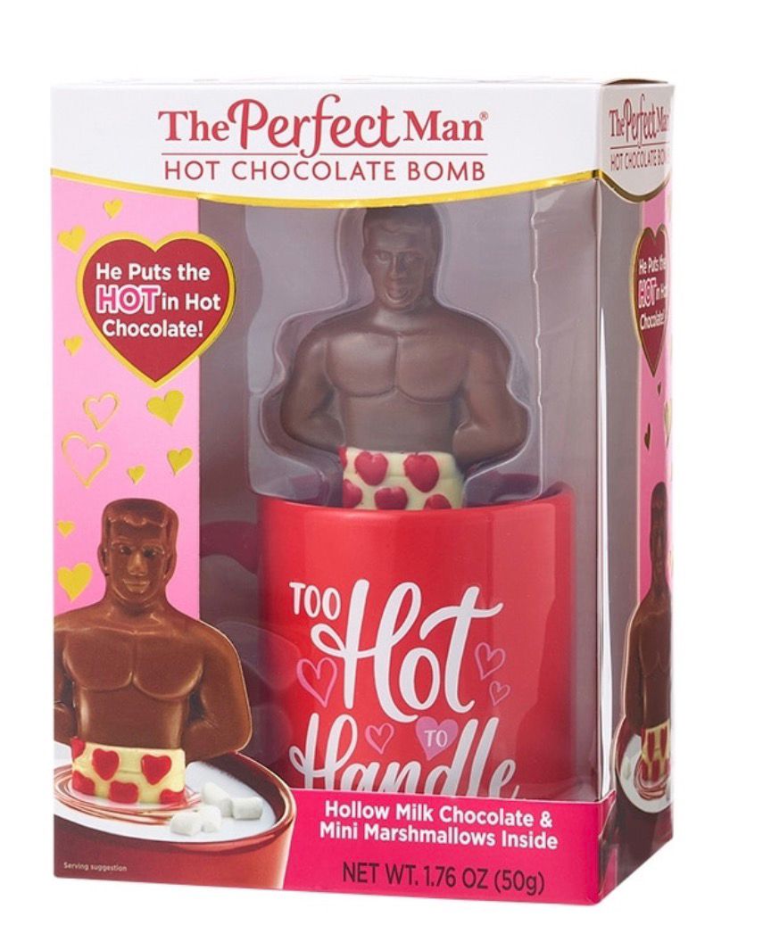以經典「Perfect Man」男性造型朱古力,配搭實用馬克杯與可溶式熱朱古力球,是一款結合趣味與實用性的情人節禮盒。
