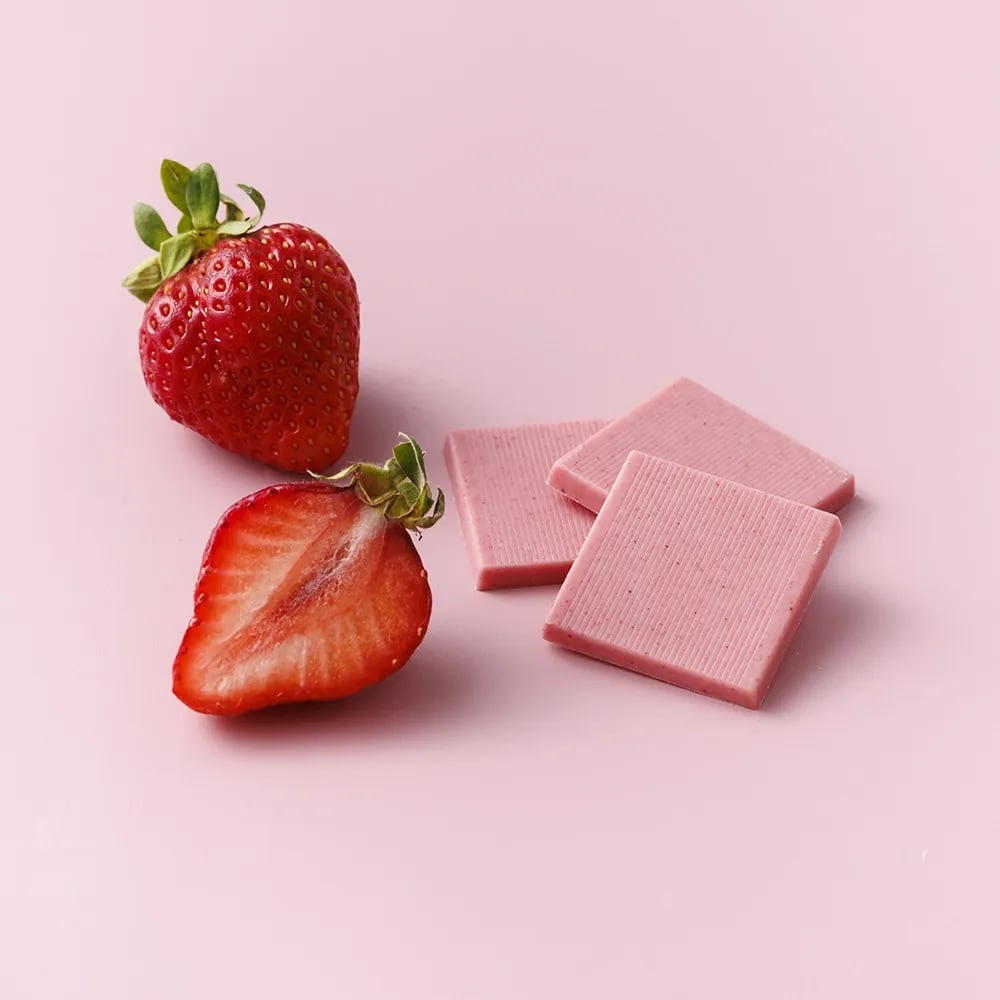 【いちご】ほんのりいちごの酸味が利いたまろやかな食感※あまおう苺ピューレパウダー1.9%使用(製品中)