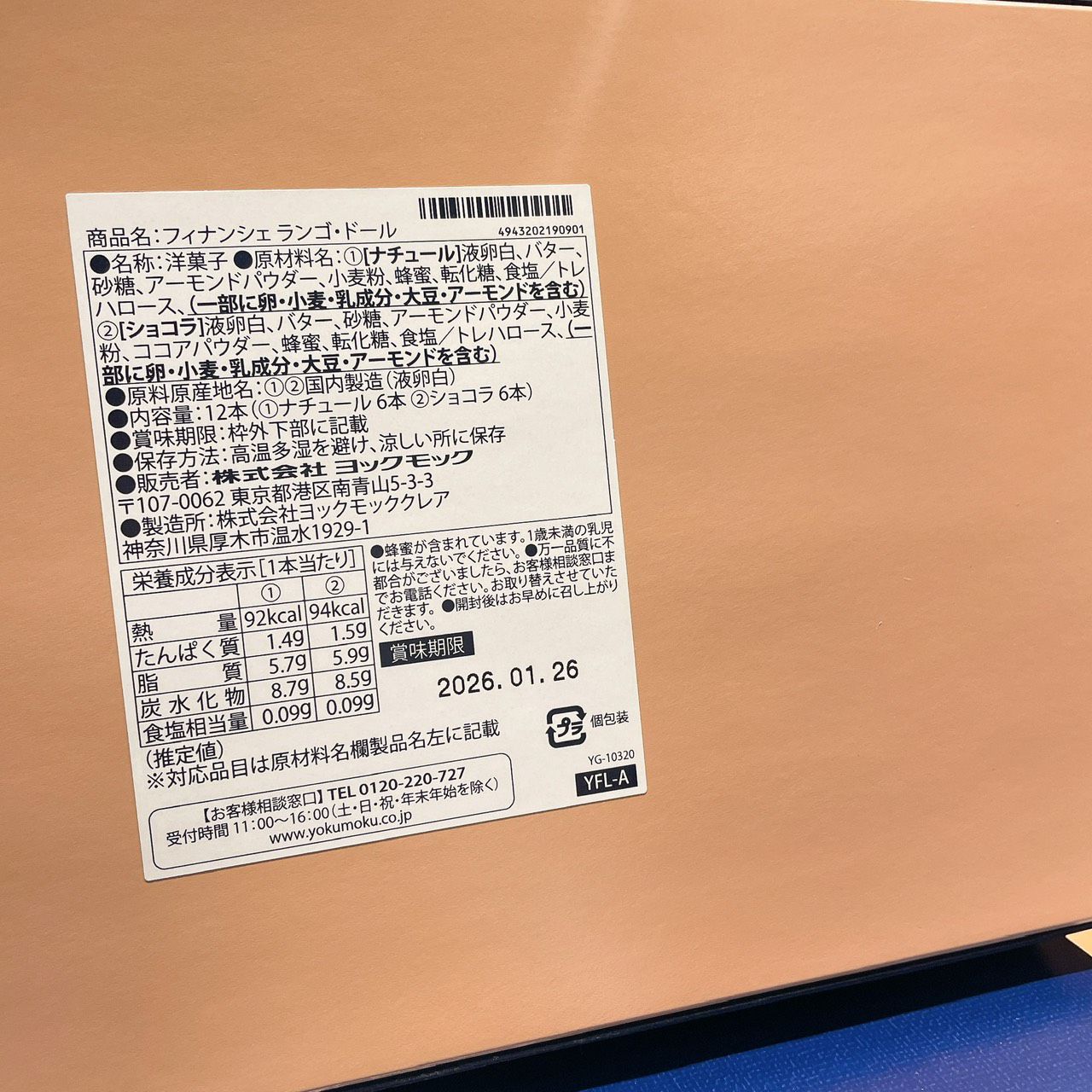 yoku moku【2種 12本入り】フィナンシェ ランゴ・ドール 「Lingot d’Or(ランゴ・ドール)」とはフランス語で金の延べ棒、金塊の意。 バターやアーモンド、はちみつ、カカオ ─ 素材そのものの味わいを引き出すために、丁寧に焼き上げました。 スティック型で手を汚さず、お楽しみいただけます。 深いブルーを基調としたシンプルで上品なパッケージは、親しい方やご自宅用のみならず、目上の方やお世話になった方への贈り物にもおすすめです。 2種のフィナンシェ バターの風味とはちみつのやさしい甘さが、ほっと一息つきたくなる味わいの"ナチュール"。 カカオが香る、こころとろける濃厚な味わいの"ショコラ"。 2種のおいしさをひと箱でお届けします。 【ナチュール】 アーモンドとバターの風味広がるナチュール。 はちみつを使用してしっとりと、黄金色に焼き上げました。 バターの香りとはちみつのやさしい甘さが調和する一品。 ひとつ食べるとまたひとつ…と食べたくなる味わいをお楽しみください。 ※蜂蜜が含まれています。1歳未満の乳児には与えないでください。 【ショコラ】 カカオの深い味わいを感じられるショコラ。 ゲランドの塩を隠し味に、香ばしく焼き上げました。 濃厚なコクとしっとりとした食感、カカオの芳醇な香り。 心とろける時間をお楽しみください。 賞味期限 発送日より25日程度の商品をお届けいたします。 💰價錢: 💲155 供應商隨時會更改價錢 下單前請先向我們查詢最新價錢 一切以下單時價格作準 ⏰截單日: 可長訂直到停產或者缺貨 🔜預計約4星期到貨 https://wewevavashop.boutir.com/ Signal GP: https://signal.group/#CjQKIIF0P55YCI4Kef_pVtjNtvtF3Gq4oWfho-rHH_I3XXbJEhADb-ff7TRQQicPixYt-Y1w Whatsapp GP: https://chat.whatsapp.com/Kk0DaE1nYKcGSP2SaNhO2h MEWE page: http://mewe.com/i/wewevavashop Facebook page: https://www.facebook.com/Wewe-Vava-Shop-102426269175059 HKBidding: https://www.hkbidding.com/store/wewe-vava-shop/